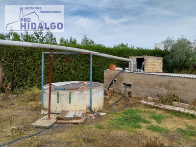 La parcela dispone de pozo propio, además de un aljibe de aproximadamente 145 m3 que se llena con agua de lluvia y tiene rebosadero al pozo, esto se encuentra en la parte trasera de la parcela dedicada a huerto. No menos importante, la parcela cuenta con agua del pueblo.